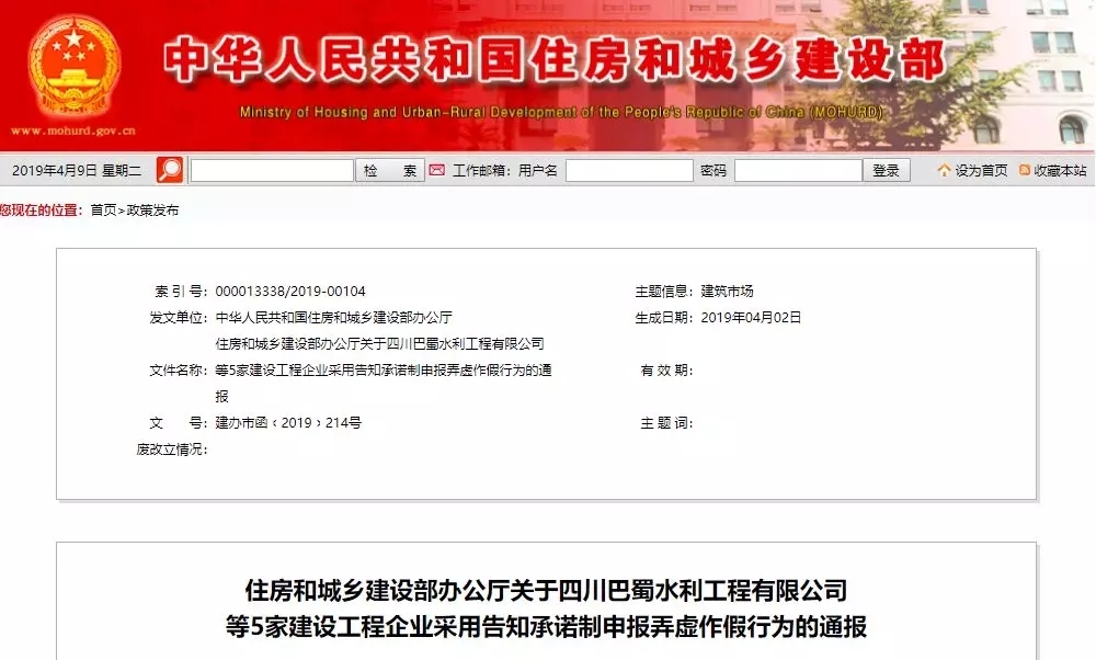 根據《中華人民共和國建筑法》《中華人民共和國行政許可法》及《建設工程企業資質申報弄虛作假行為處理辦法》(建市〔2011〕200號)等規定,住房和城鄉建設部決定對四川巴蜀水利工程有限公司等5家建設工程企業予以通報批評,不批準其資質申請,并將其不良行為在全國建筑市場監管公共服務平臺予以公布,自本通報印發之日起1年內不受理上述企業申請該項行政許可。