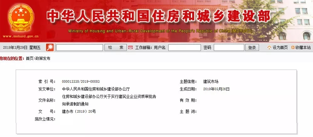 ?近日,住建部辦公廳發布《關于實行建筑業企業資質審批告知承諾制的通知》,明確自2019年4月1日起,在全國范圍對建筑工程、市政公用工程施工總承包一級資質審批實行告知承諾制。