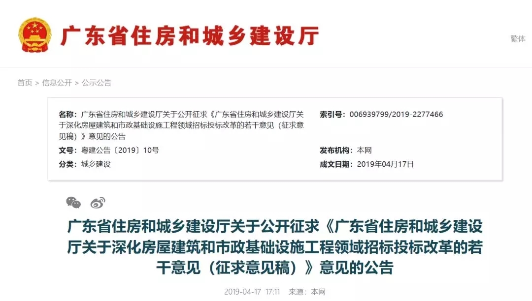 針對工程招投標,廣東省住建廳再出重拳!為解決工程招投標監管不到位、加大打擊串標力度,4月17日廣東省住建廳印發《關于深化房屋建筑和市政基礎設施工程領域招標投標改革的若干意見(征求意見稿)》。